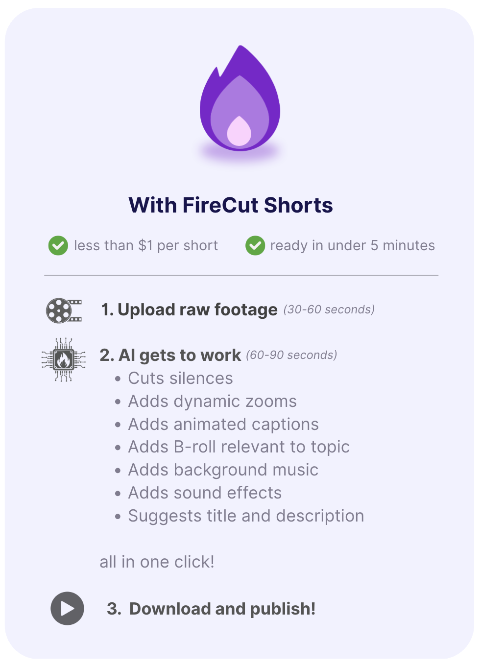 FireCut Shorts is built for speed and optimized for virality.